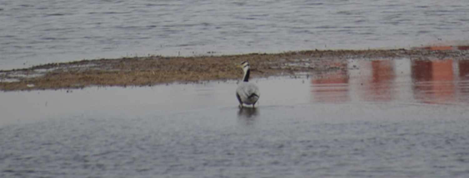 城南管理站工作人员近日在进行候鸟监测时,发现两只大鸟,两只大鸟体羽灰褐色,头和颈侧白色,头顶有两道黑色的斑十分明显,嘴脚黄色,经查阅资料和咨询鸟类专家,确定该鸟为斑头雁,这是首次在花马湖湿地记录到斑头雁。