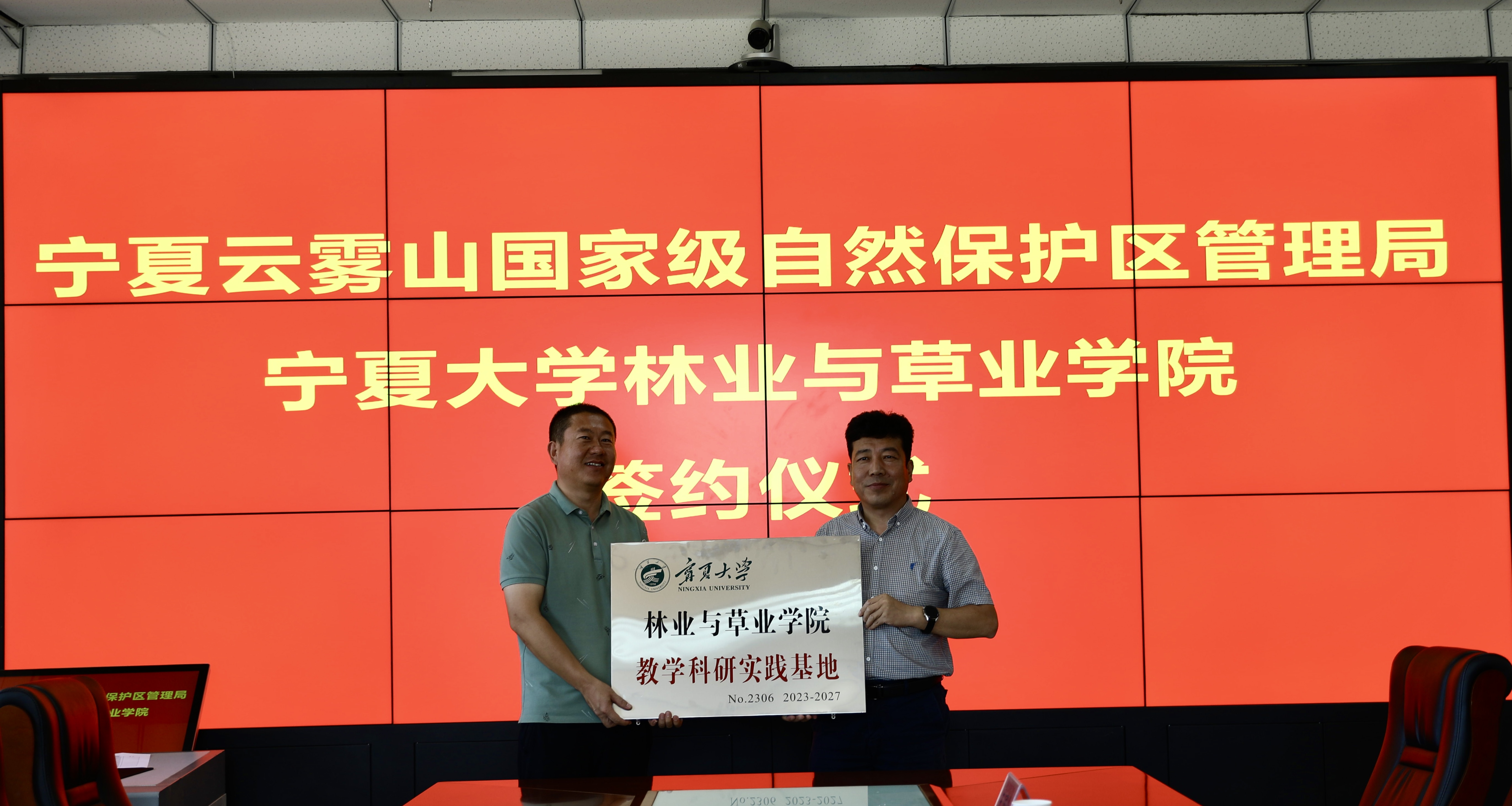 2023年9月13日,宁夏云雾山国家级自然保护区管理局与宁夏大学林业与草业学院在云雾山保护区举行教学科研实践基地签约及挂牌仪式,宁夏大学林业与草业学院书记贺海明、院长马红彬及保护区主要负责人等出席了签约挂牌仪式。