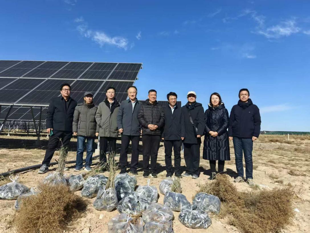 实地调研为支撑,聚焦方案可行性。当天,与会专家与领导实地考察了“林光互补”实证基地的规划建设区,对项目区的自然环境、立地条件、光伏设施设备进行了实地查看,对预种植的林草种类的生存生长潜力空间进行了评估。在座谈会上,课题主持人和相关负责人针对本课题建设的目的、意义、初步设计、目标任务进行了系统汇报。与会领导和专家在仔细听取汇报后,对课题的研发方向、初步设计和前期工作给予了充分肯定,专家们认为,该方案目标明确、技术路线清晰、研究内容系统,特别是将光伏基础设施视为一种新的生态微环境进行系统性研究,摸清光热水土等资源的重新分配规律、植被的变异规律,对科学推动西北干旱半干旱地区新能源与生态环境协调发展具有非常重要的意义。同时,与会专家本着严谨科学的态度,围绕课题确立的三大核心任务,从不同角度提出了一些宝贵的意见和建议,为课题组下一步更好地优化方案、细化技术路线提供了关键支撑。