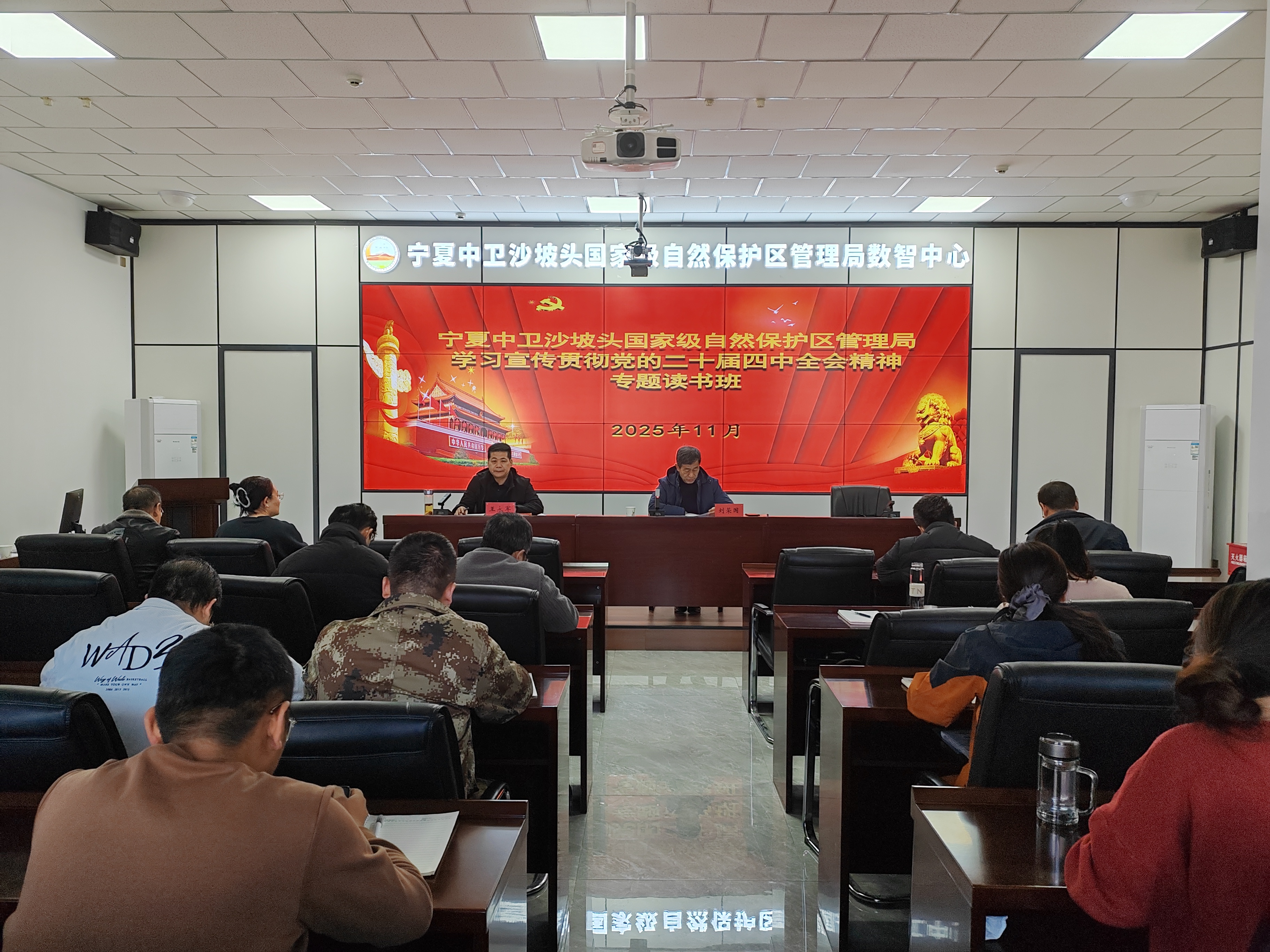 为深入学习宣传贯彻党的二十届四中全会精神,11月25日,宁夏中卫沙坡头国家级自然保护区管理局举办学习贯彻党的二十届四中全会精神专题读书班,全局党员干部职工参加。