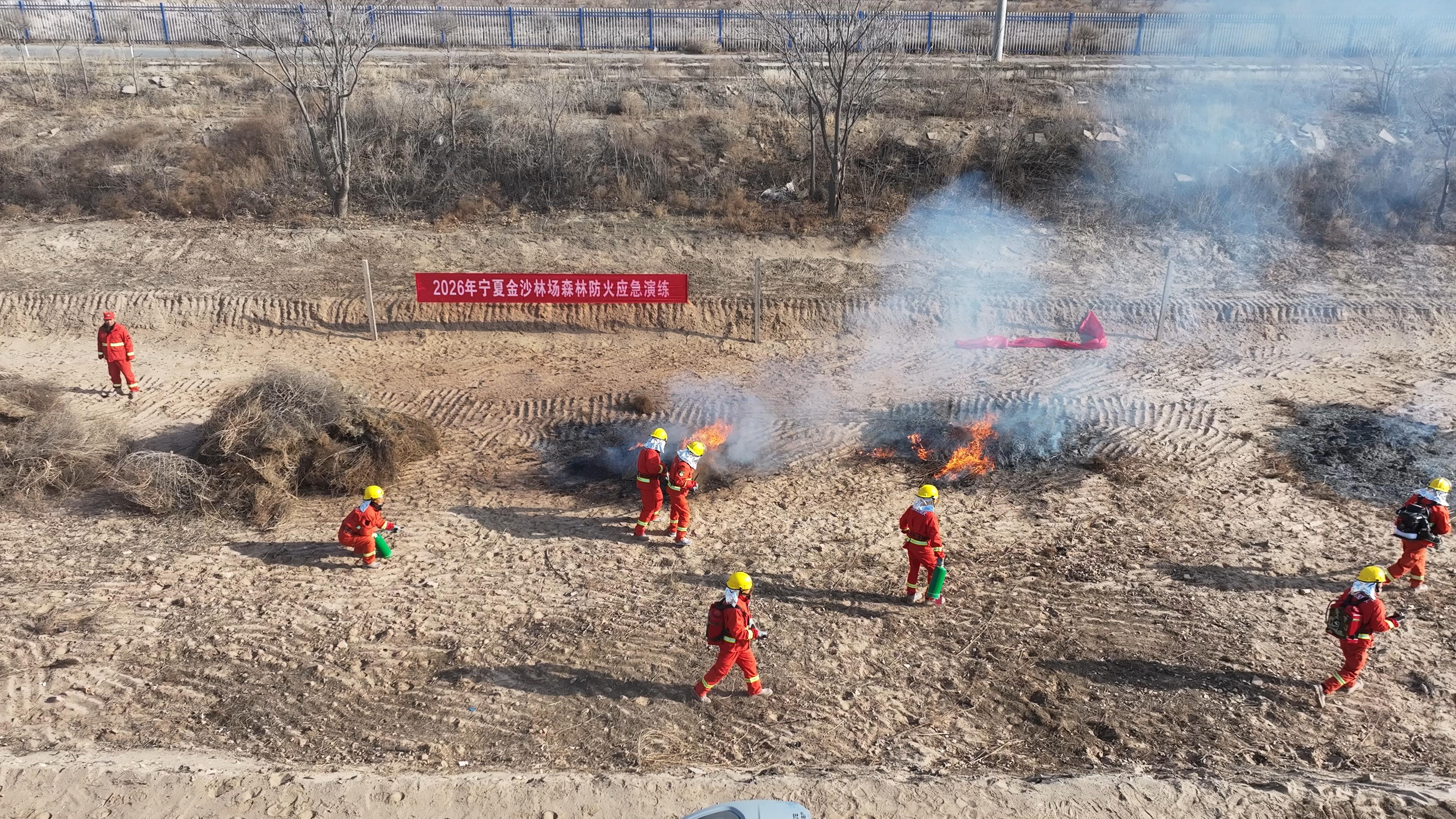 自治区两会和春节即将来临之际,为做好2026年度森林防灭火工作,宁夏金沙林场于1月28日下午组织开展了森林防灭火实战演练,全面检验应急预案的实战性与可操作性,着力提升各部门应急响应和协同处置能力。