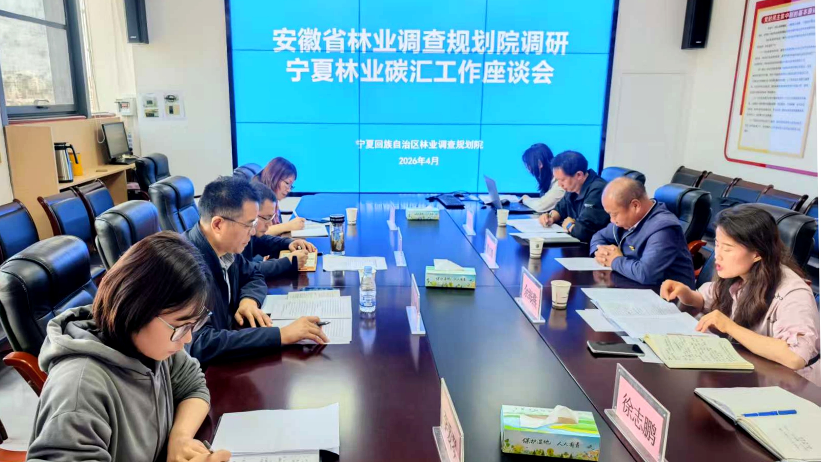 2026年4月24日,安徽省林业局一行赴宁夏开展林业碳汇工作专题调研交流,双方围绕碳汇发展、平台建设、数据管理等深入研讨,互学先进经验,共促区域林业碳汇高质量发展。