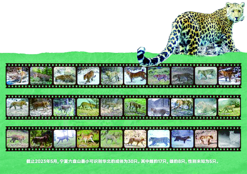 经过调查,截至2023年5月,六盘山最小可识别华北豹成体为30只,其中雌性17只、雄性8只,性别未知5只。
