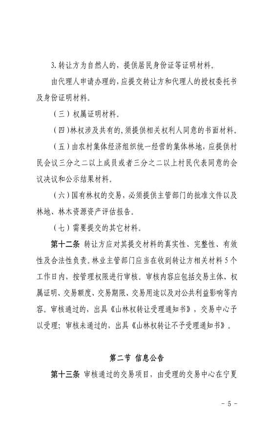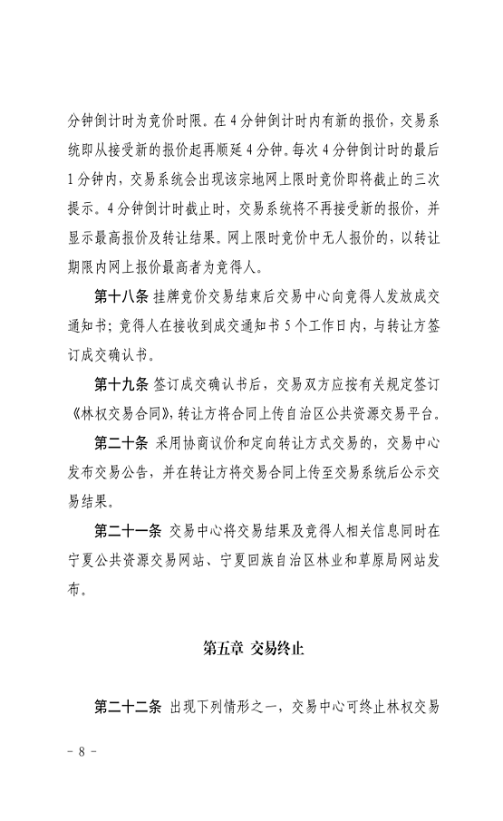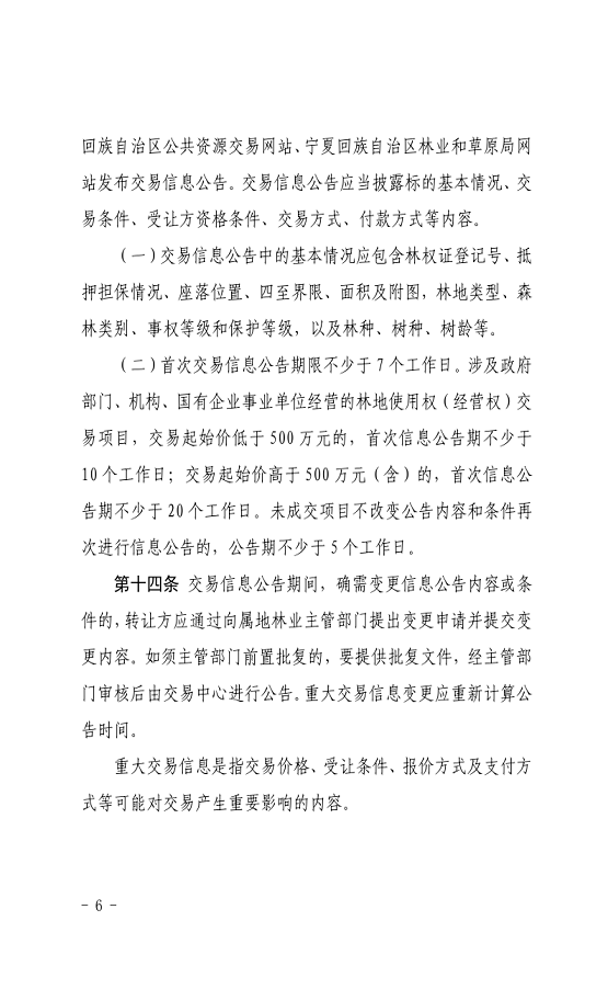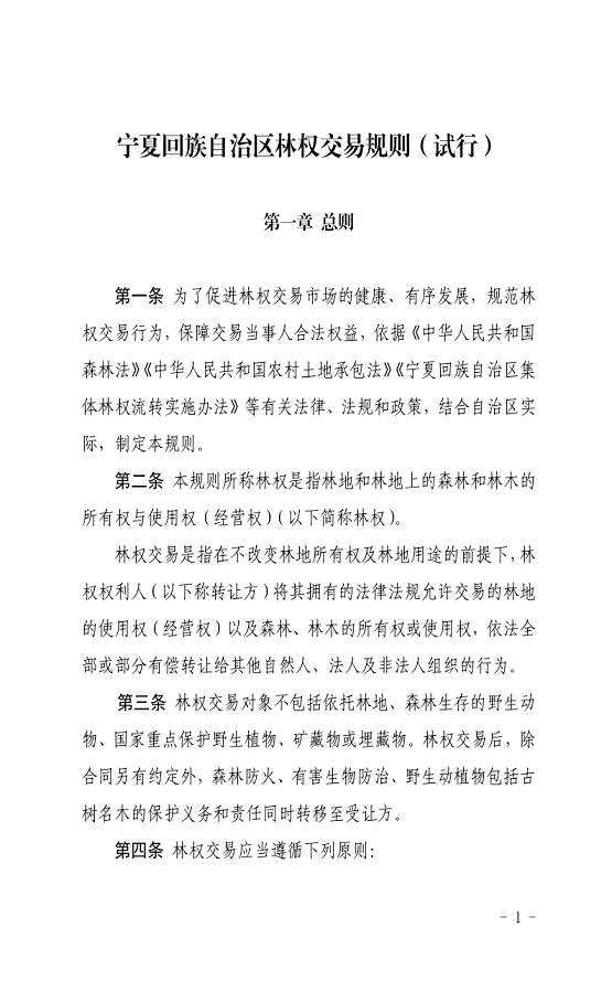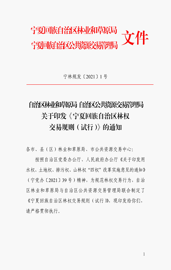 关于印发《宁夏回族自治区林权交易规则(试行)》的通知