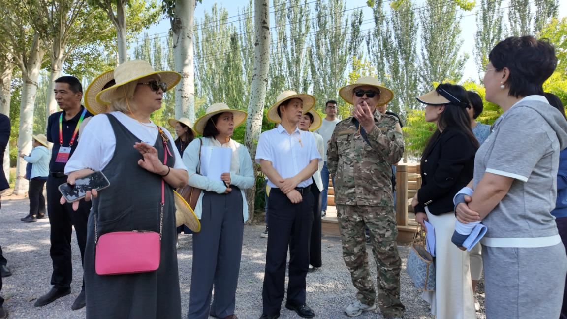 代表团先后参观考察了宁夏葡萄酒与防沙治沙职业技术学院、灵武市白芨滩防沙林场和全国防沙治沙展览馆以及宝丰“农光一体化”产业基地。宁夏国际荒漠化防治合作中心与哈萨克斯坦代表团围绕荒漠化防治技术、生态修复政策及产业协同发展等内容展开深入交流。代表团对宁夏投入如此巨大的人力、物力、财力数十年坚持推进荒漠化治理表示由衷赞叹,对中国荒漠化防治工作给予高度评价,对宁夏的林光互补治沙模式、林草种质资源繁育、规范化苗圃建设等方面表现出了浓厚兴趣,并邀请我方组团赴哈萨克斯坦访问交流,希望借此机会加强沟通交流、建立合作机制。