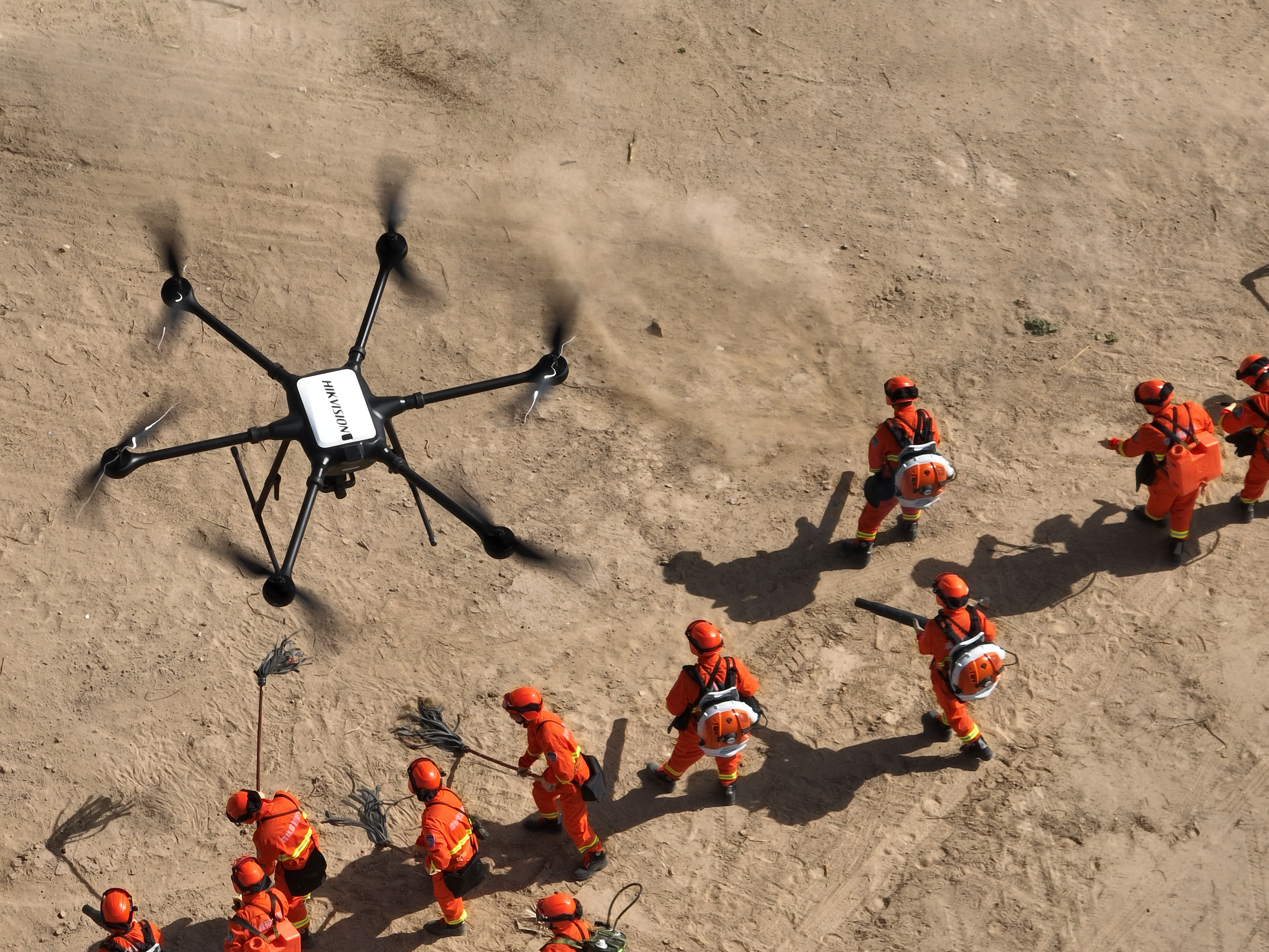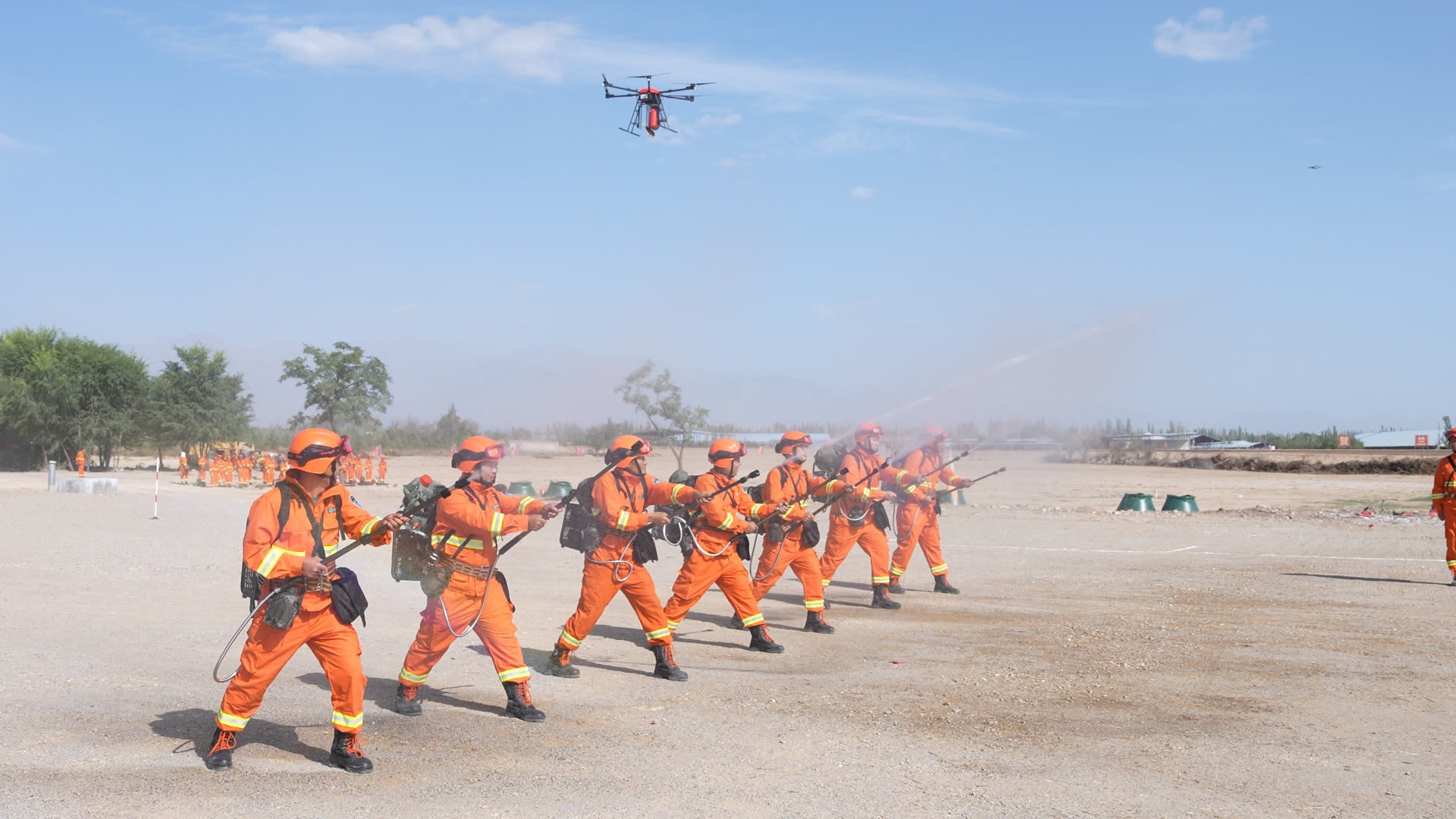演练突出多部门联动,由宁夏贺兰山国家级自然保护区管理局牵头,联合银川市应急管理局、银川市西夏区应急管理局、银川市西夏区消防救援大队、银川市西夏区自然资源局、银川市公安局西夏区分局森林和草原派出所、银川市西夏区森林火灾应急消防救援队等多家单位协同参与,构建起“统一指挥、分工明确、高效联动”应急处置格局。演练中,多套科技装备悉数亮相:系留无人机构建空中通信中继平台,确保火场通信信号全域覆盖;多型号侦查与灭火无人机精准勘察火情并实施定点扑打;防火机器人深入危险区域执行防火隔离带开设任务,充分彰显“人防+技防+物防”现代化防火体系优势。本次演练累计投入专业救援力量120余人,动用各类车辆及新型防火装备100余台(套),是推动“强化科技支撑、发展防火新质生产力”的生动实践,展现了保护区应对处置突发火情的专业化、高效化水平。