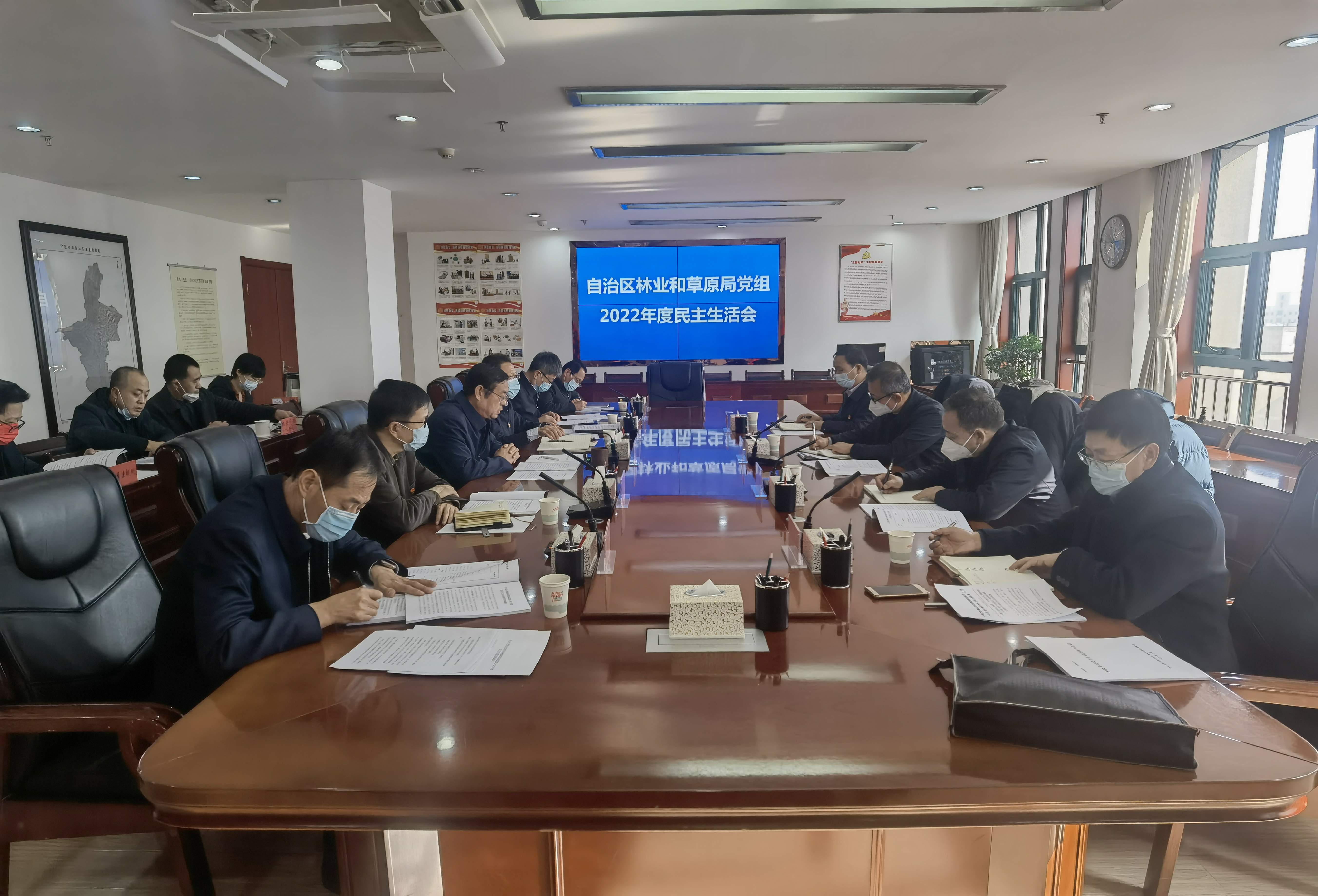 2月10日,自治区林业和草原局党组召开2022年度民主生活会。此次会议围绕主题,结合林草工作实际,深入开展自我剖析,严肃认真进行批评和自我批评。会议由局党组书记、局长徐庆林同志主持,自治区党委第三指导组组长张永红同志出席会议并点评讲话,驻自然资源厅纪检监察组副组长范利平同志及指导组成员到会指导。