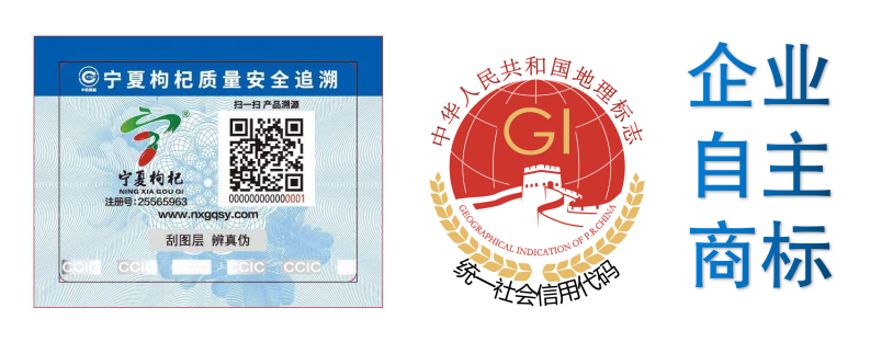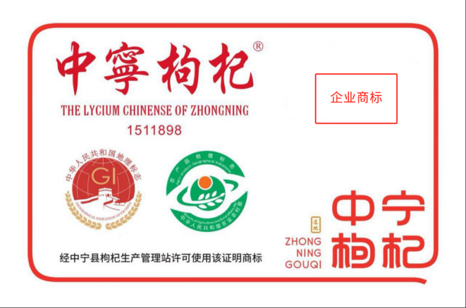 “宁夏枸杞”地理标志证明商标于2021年10月获国家知识产权局核准注册(注册证号为 25565963、25565964、25565965、59676128),商标注册人为宁夏枸杞产业发展中心。“中宁枸杞”地理标志证明商标于2001年1月获原国家工商行政管理总局核准注册(注册证号为1511898),商标注册人为中宁县枸杞生产管理站。2009年4月25日,被原国家工商行政管理总局认定为中国驰名商标。